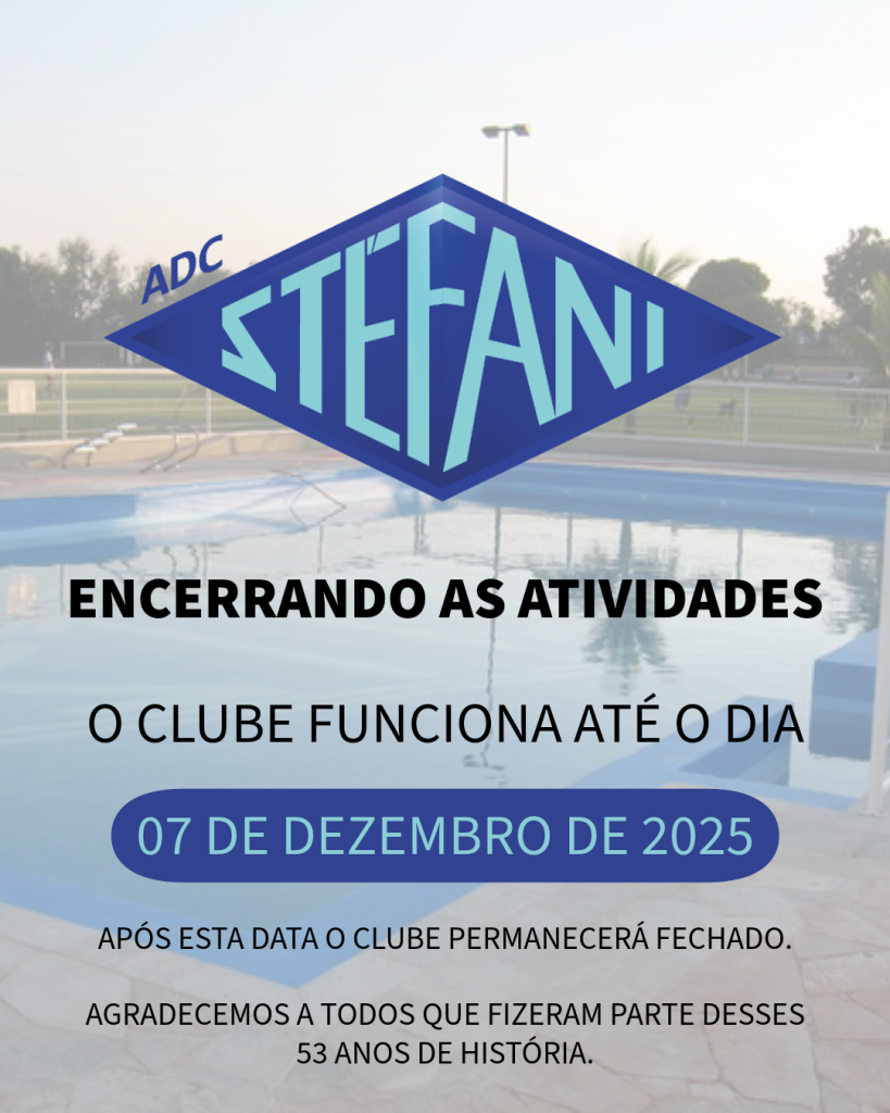 Foram 53 anos dedicados a ser o palco das mais importantes festas, dos campeonatos mais disputados e do lazer de incontáveis famílias. Nossas piscinas, quadras e salões foram o cenário onde gerações cresceram, riram e criaram laços que o tempo jamais apagará. O legado de convivência e a marca que a ADC Stéfani deixa na história da nossa cidade são inestimáveis.